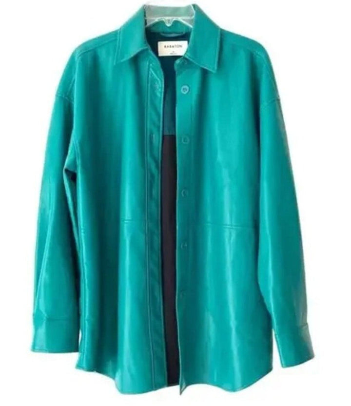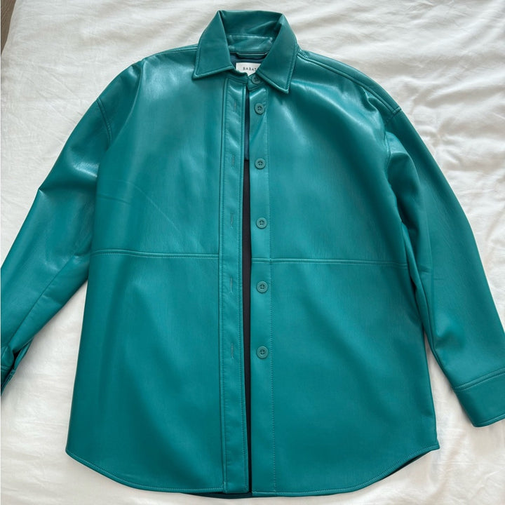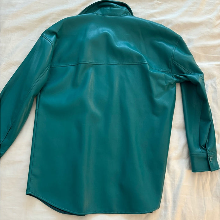 Babaton Women's Teal Blue Longline Faux Leather Pelle Shirt Jacket Small