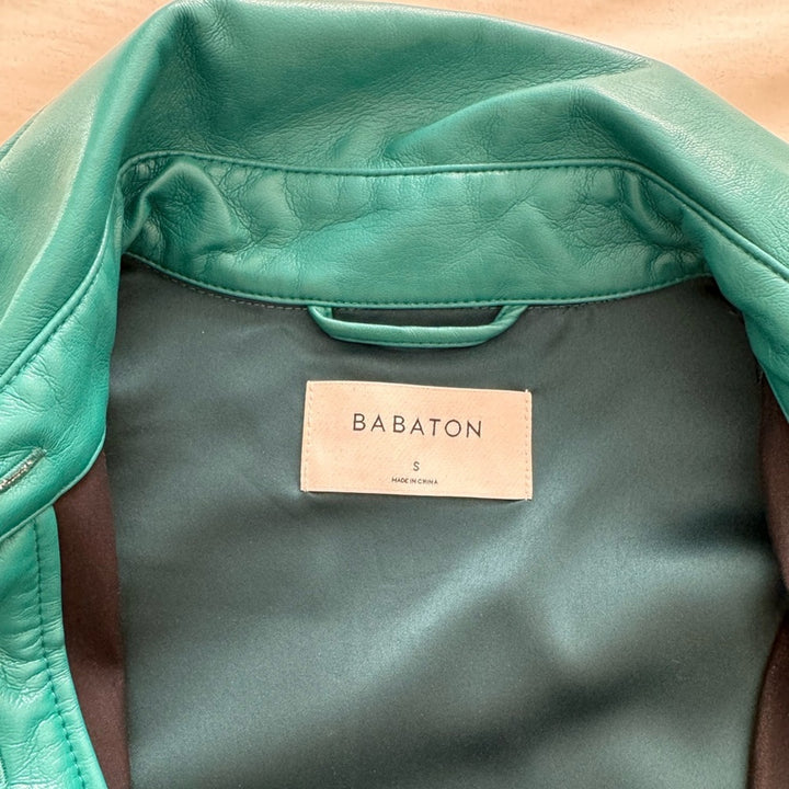 Add a sleek edge to your wardrobe with this Babaton longline faux leather shirt jacket in a rich teal blue. Crafted with a supple faux leather finish, it features a classic button-up front, pointed collar, and long sleeves, combining structure with contemporary style.