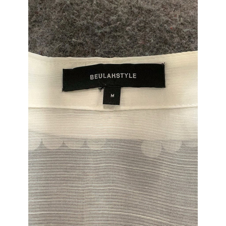 Romantic and refined, this Beulah White Sheer Blouse in size Medium features dreamy 3D floral appliqué, a crisp collar, and delicate short sleeves. Perfect for garden parties, brunches, or summer soirées—add an ethereal charm to your wardrobe today.
