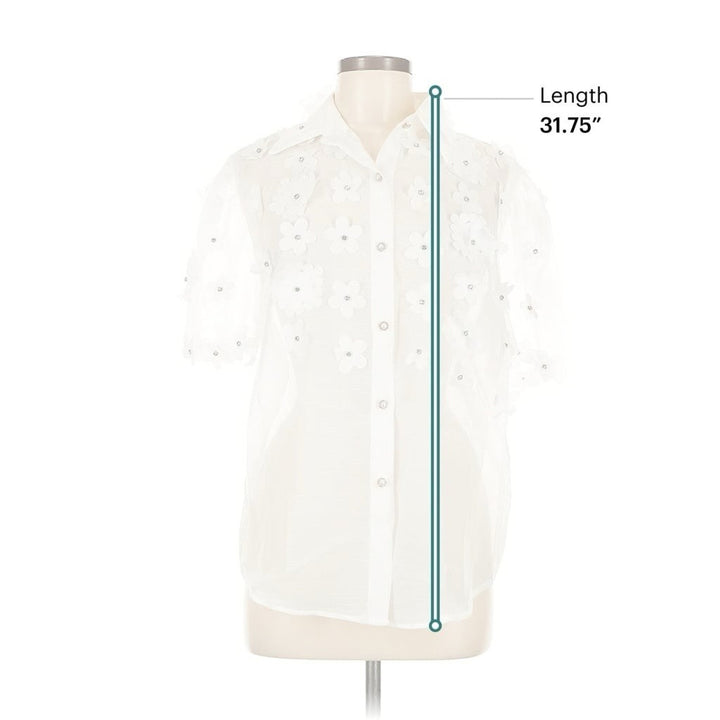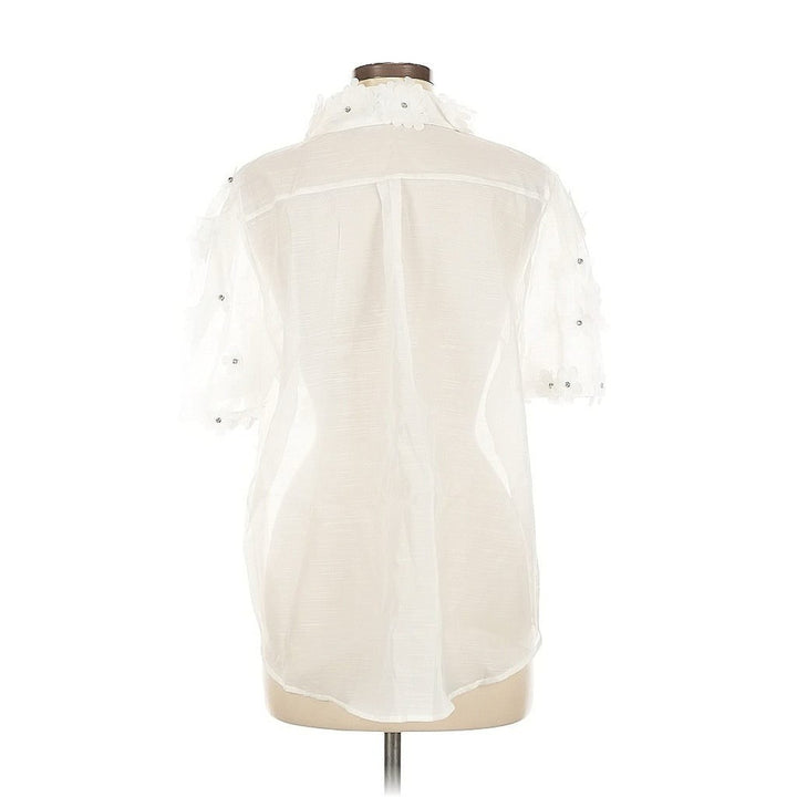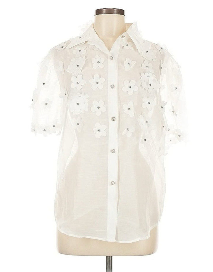 Beulah Women’s White Sheer 3D Floral Short Sleeve Collared Blouse Size Medium
