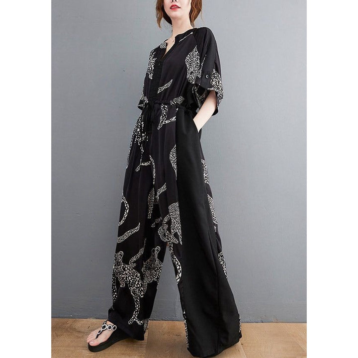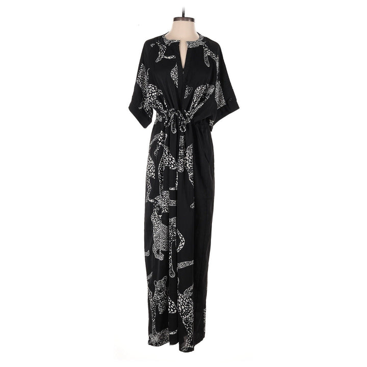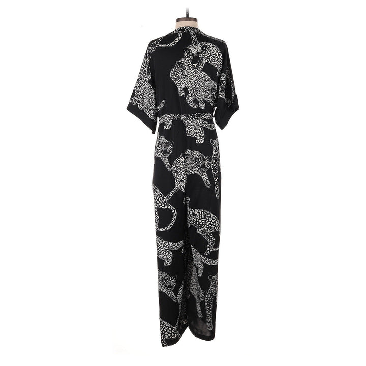 Beulah Women's Leopard Black Tie Waist Black Jumpsuit Small/medium