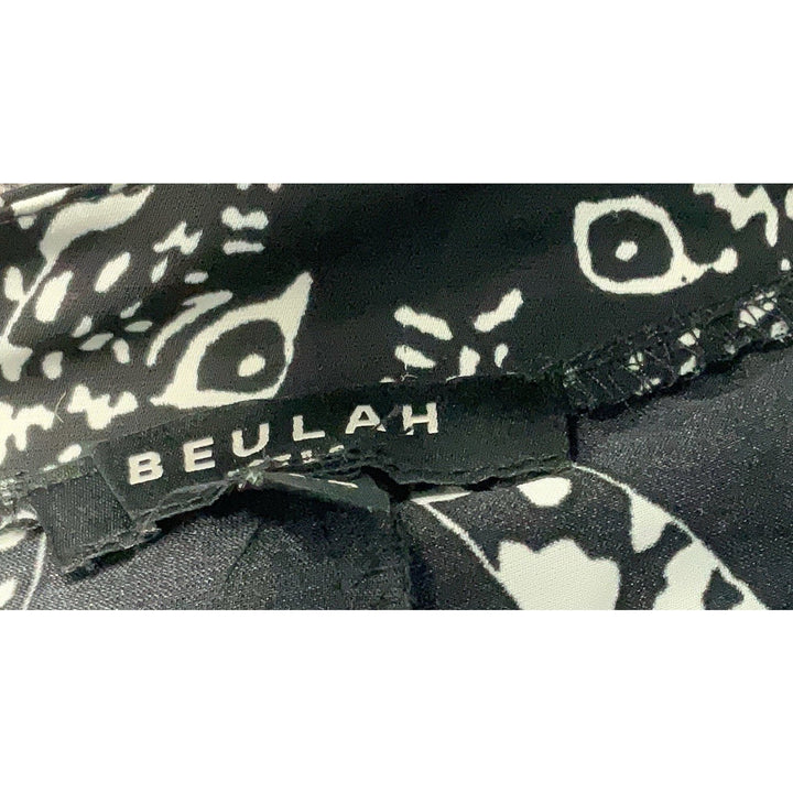 The Beulah Leopard Black Tie Waist Black Jumpsuit in size small/medium is a stylish one-piece outfit for women featuring a tie closure and a leopard theme. The black color and jumpsuit style make it a versatile and trendy addition to any wardrobe. Made by the brand Beulah, this jumpsuit is designed for regular size women and offers a fashionable and comfortable option for various occasions.