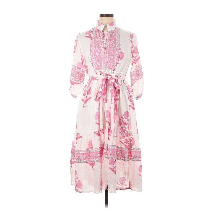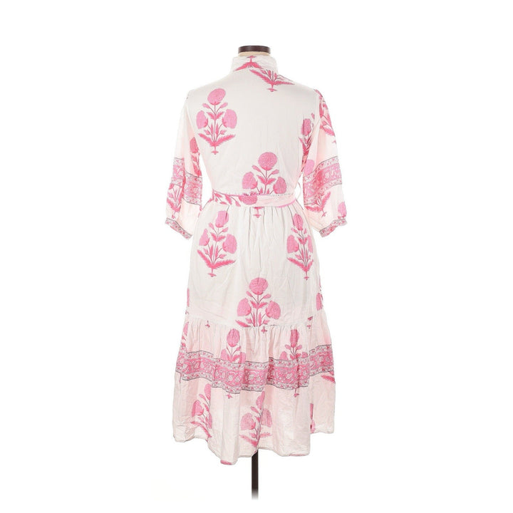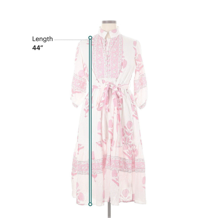 Bloom Women's Midi Dress 100% Cotton Pink White Block Print Sue Floral Sartor India XXL