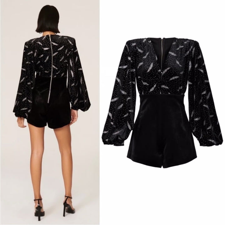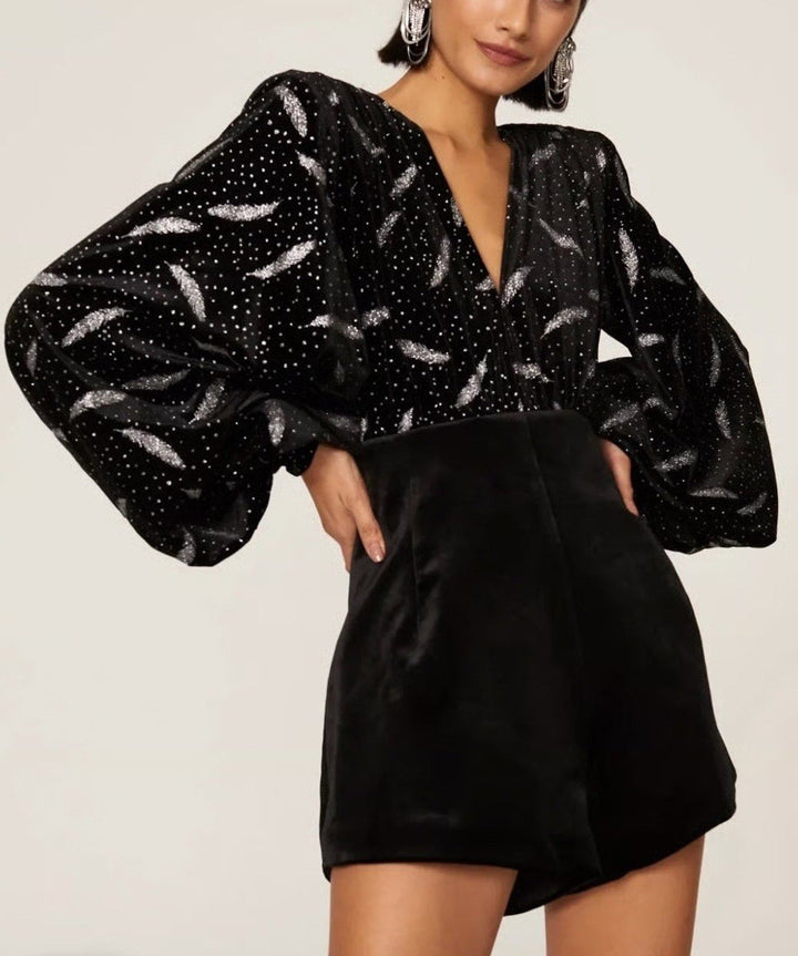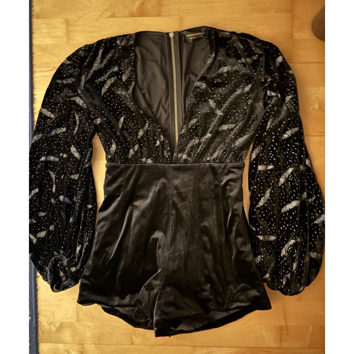 Bronx and Banco Women’s Maria Black Velvet Sparkle Romper – Medium