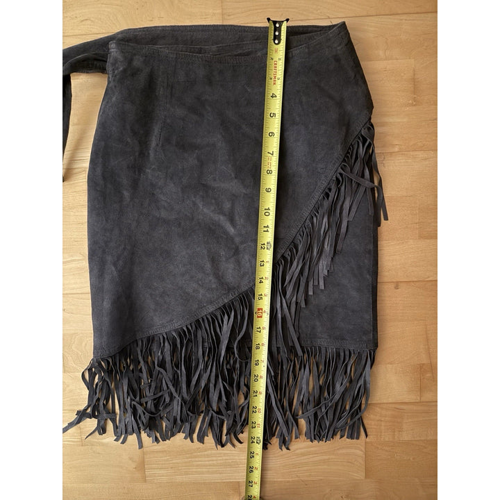 Cedars Women’s Green Genuine Leather Suede Fringe Wrap Skirt – Small