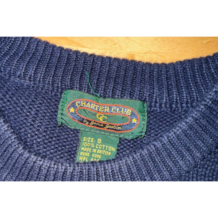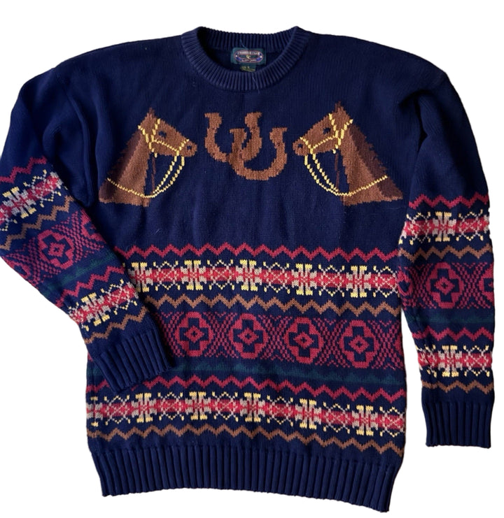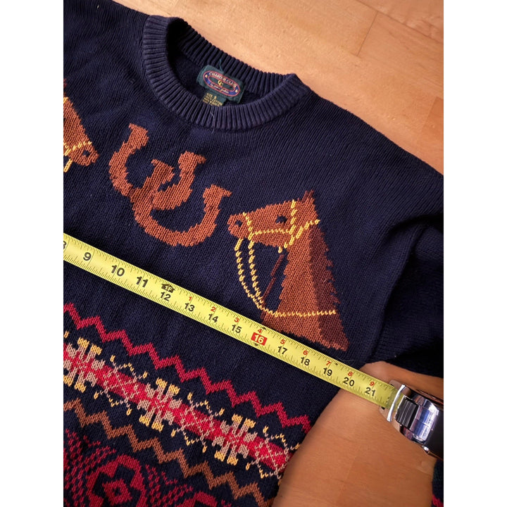 Charter Club Women’s Blue Green Horse Equestrian Cotton Sweater – Small