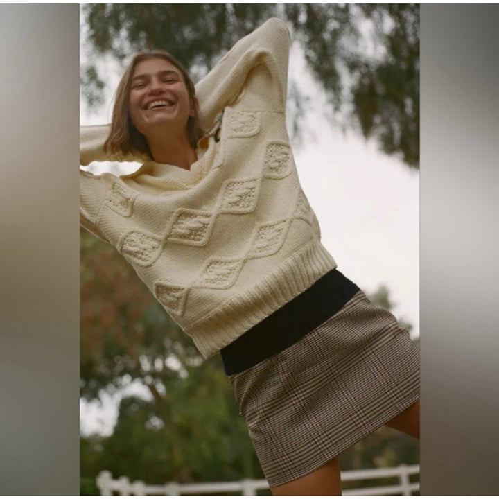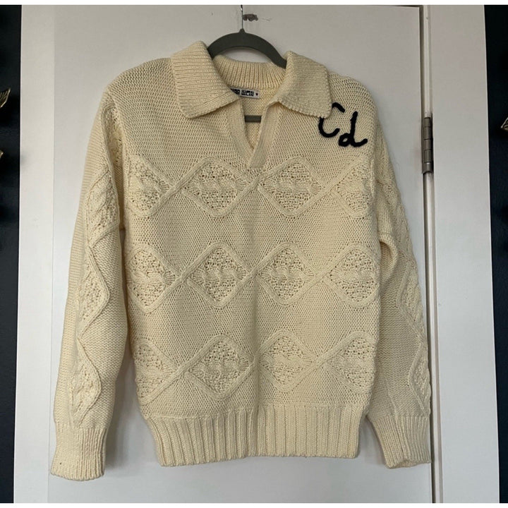 Soft and sophisticated, the Ciao Lucia cream cableknit sweater features a classic henley collar and delicate embroidered initials for a signature touch. Made from breathable cotton and designed in size XS, it’s the perfect layering piece with a vintage-inspired feel.