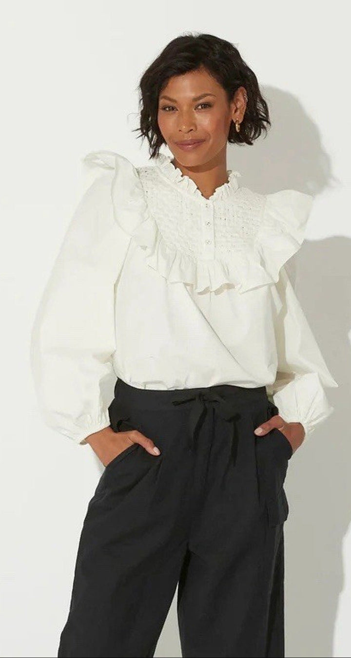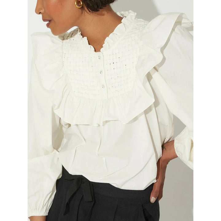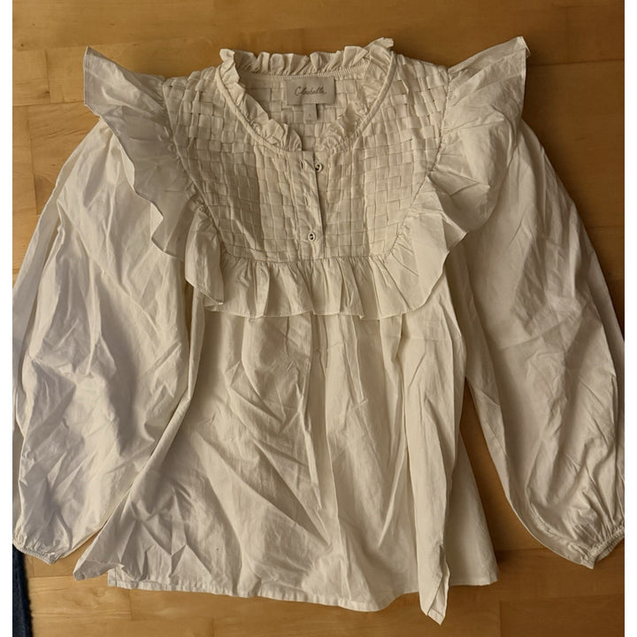 Cleobella Women’s White Ruffle Vivienne Blouse – Large