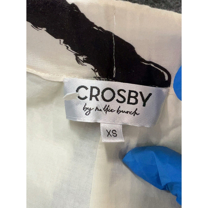 Add playful sophistication to your summer wardrobe with the Crosby by Mollie Burch Squiggle Cailan Shorts in black and white, size XS. These high-waisted paperbag shorts feature a bold abstract print, a flattering tie waist, and a comfortable yet polished fit. Perfect for warm-weather outings, vacations, or weekend wear, these versatile shorts offer a chic and contemporary twist on a classic silhouette. Whether paired with a blouse or a casual tee, they’ll elevate your look with effortless style.