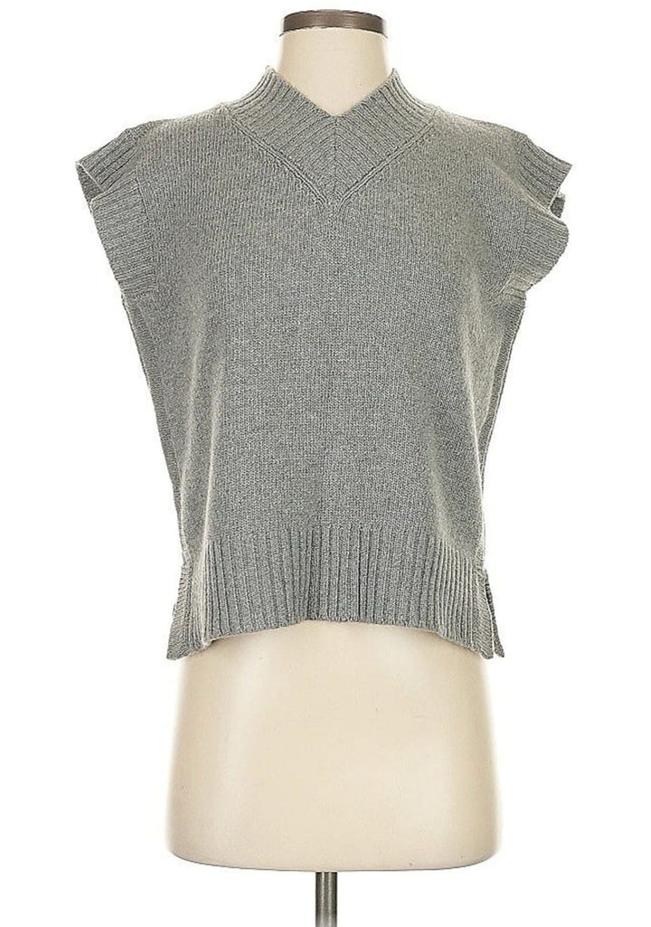 & Daughter Women’s Grey Merino Wool Cashmere Sleeveless V-Neck Sweater Vest – XS