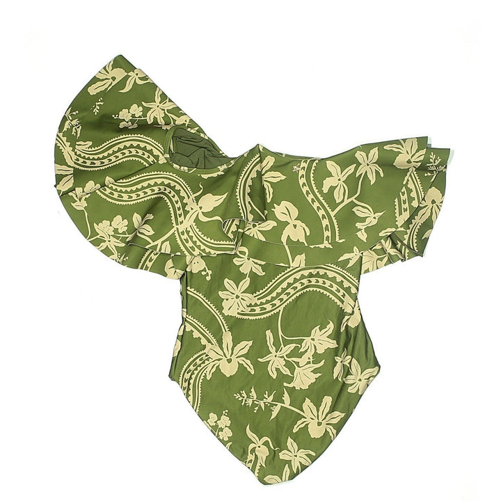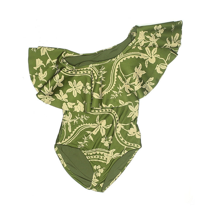 Encantadore Women’s Green Floral Print One-Shoulder Ruffle Abigail Swimsuit | Size Small