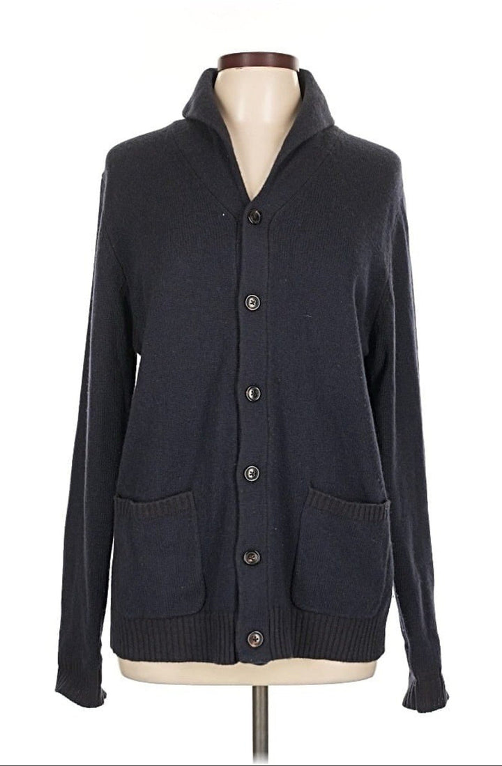 Glen Lyon Women’s Navy Blue Cashmere Button Cardigan with Elbow Pads – Size Large