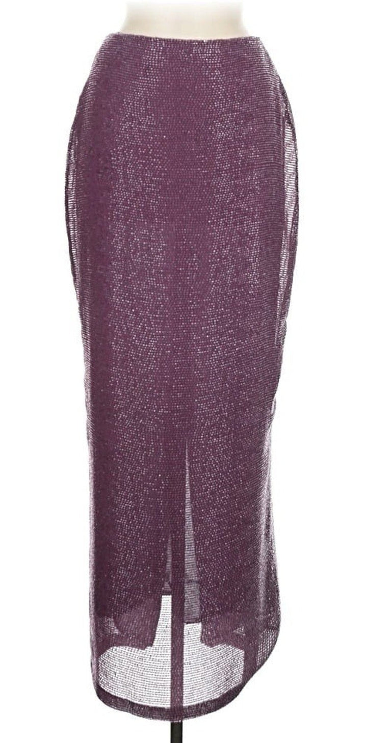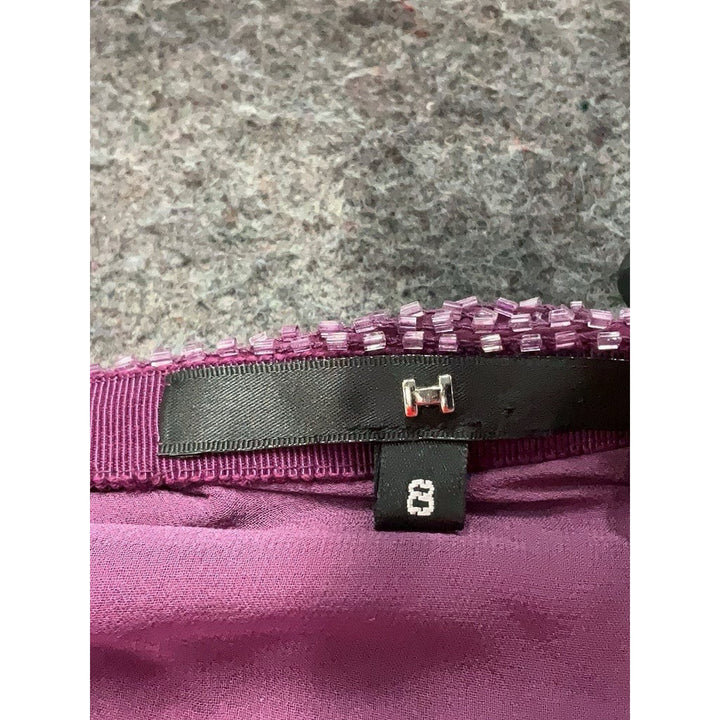 H by Halston Women’s Purple Silk Beaded Studded Midi Layered Sheer Skirt – Size 8