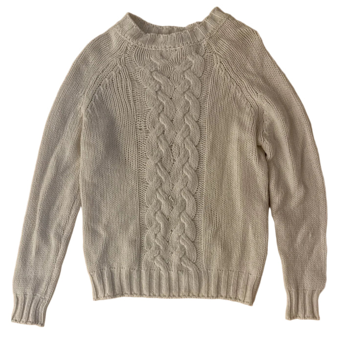 Incentive! Cashmere Women’s White Cableknit Crewneck Chunky Sweater XS