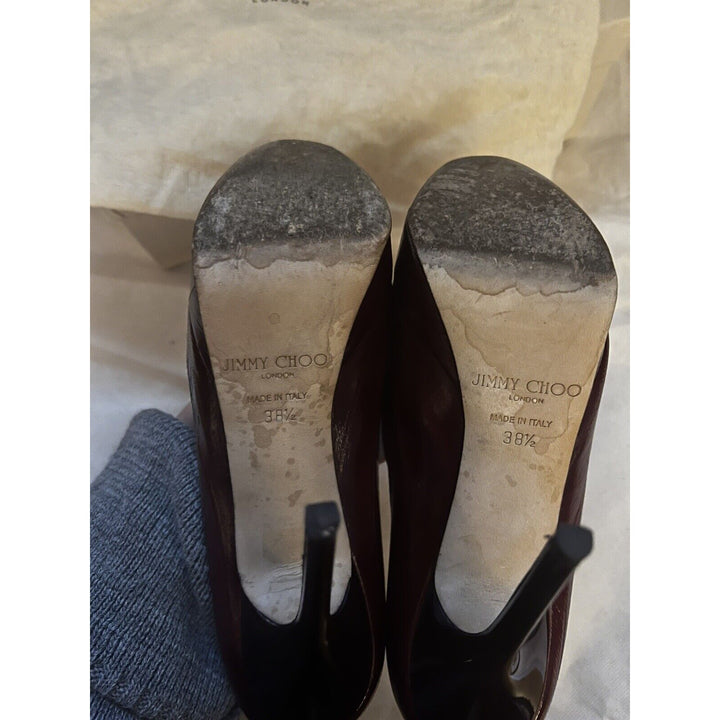 Jimmy Choo Cosmic Pumps Wine Eel Skin Leather Heels Stiletto Burgundy 38.5 / US 8.5