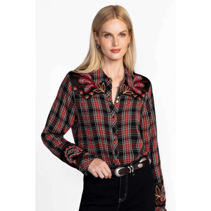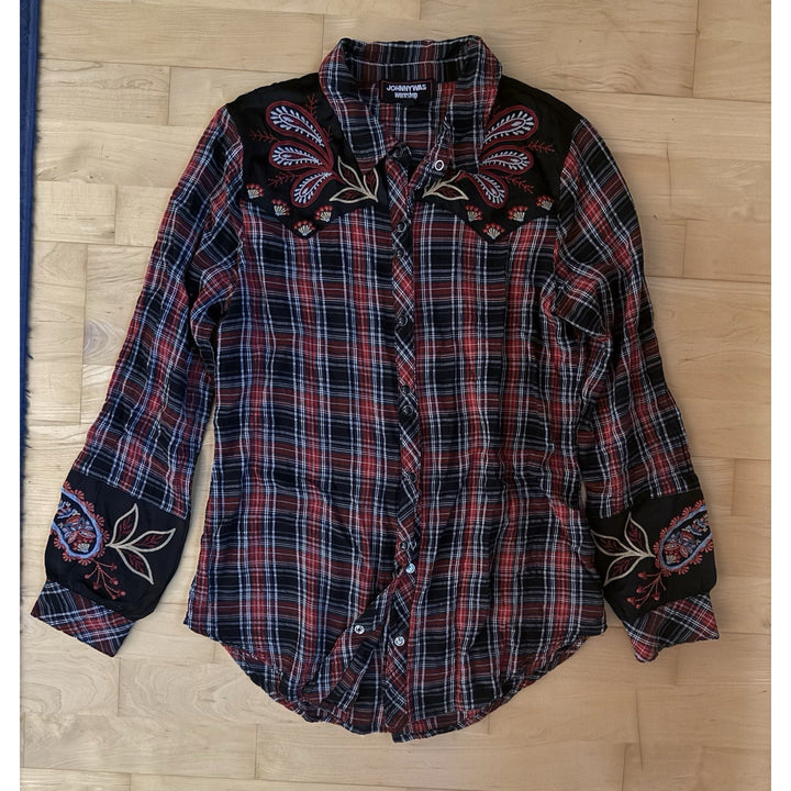 Johnny Was Women's Puff Sleeve Western Shirt – Red Buffalo Check – XS