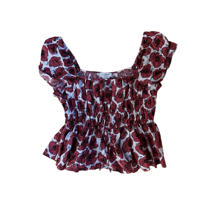 Kate Spade Women’s Poppy Toss Square-Neck Floral Top – Cream, Pink & Red – Size XL