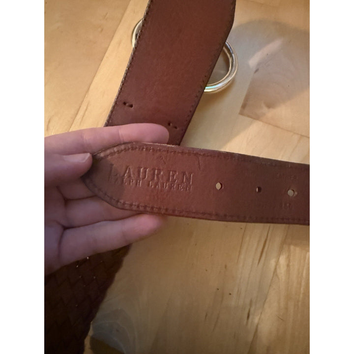 Lauren Ralph Lauren Braided O-Ring Brown Leather Double Belt, Size XL