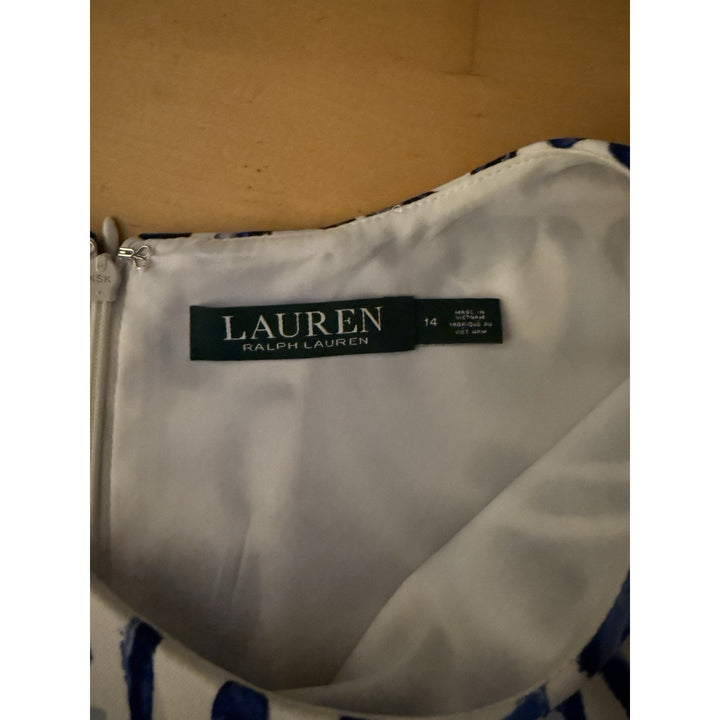 Lauren Ralph Lauren Women's Paland Crepe Dress Coastal Damask Print Size 14 – Sleeveless Stretch A-Line