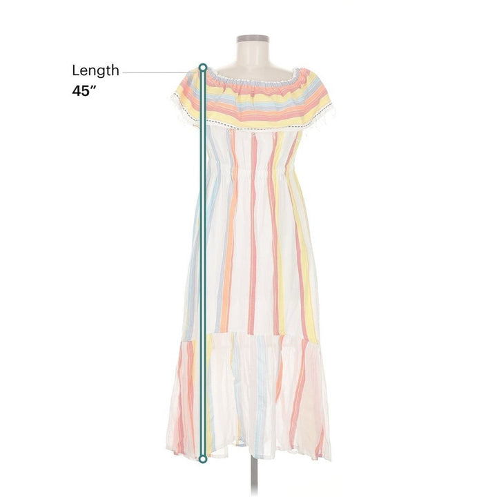 Breezy and bohemian, the Lemlem Mokati Off-Shoulder Maxi Dress is the perfect warm-weather statement piece. Crafted from a lightweight cotton-acrylic blend, it drapes effortlessly with a flattering off-the-shoulder neckline, short sleeves, and a stretchy elastic waist for all-day comfort.