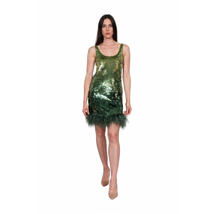 Likely Women's Sequin Feather Trim Mini Dress – Green – Small