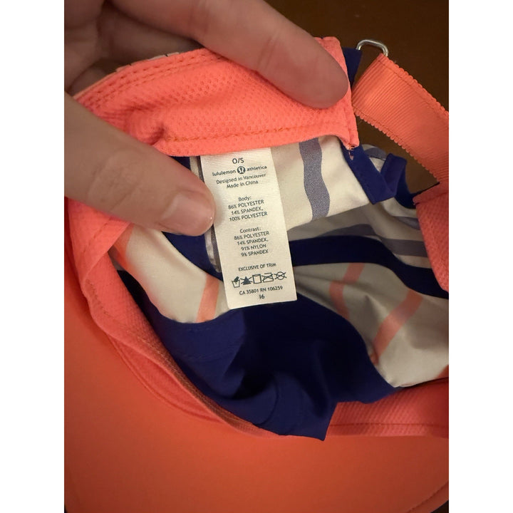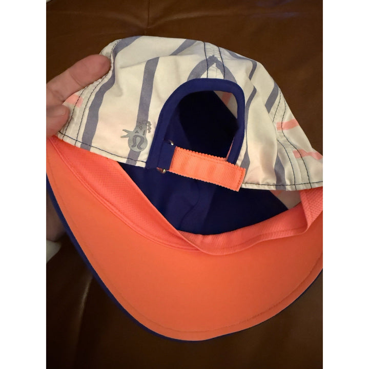 Lululemon Speed Demon Run Hat – Blue Striped with Orange Ponytail Slot