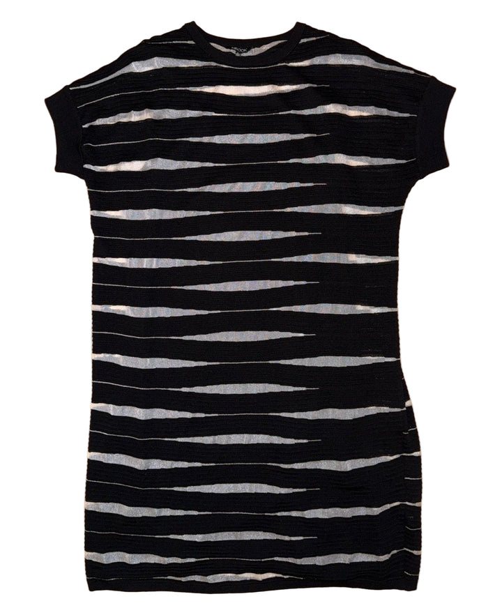 A polished essential, this Misook shift sweater dress combines comfort with timeless style. Crafted in a black and white textured knit, it features a classic shift silhouette that flatters while offering ease of movement.