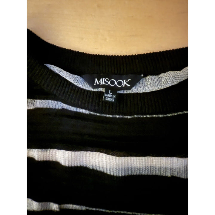 MISOOK Women’s Black & White Textured Knit Shift Sweater Dress – Size Large