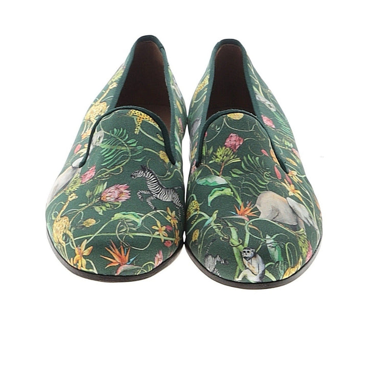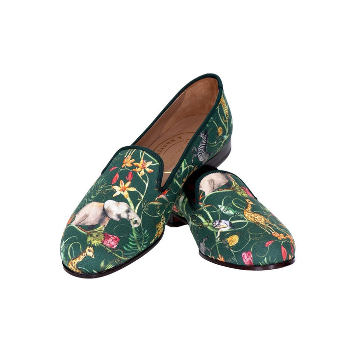 NEW Stubbs & Wootton Africa Emerald Silk Venetian Green Print Flat 10