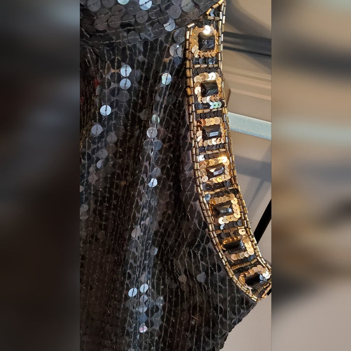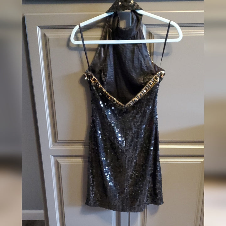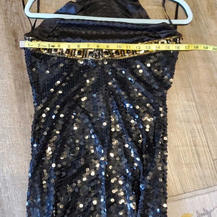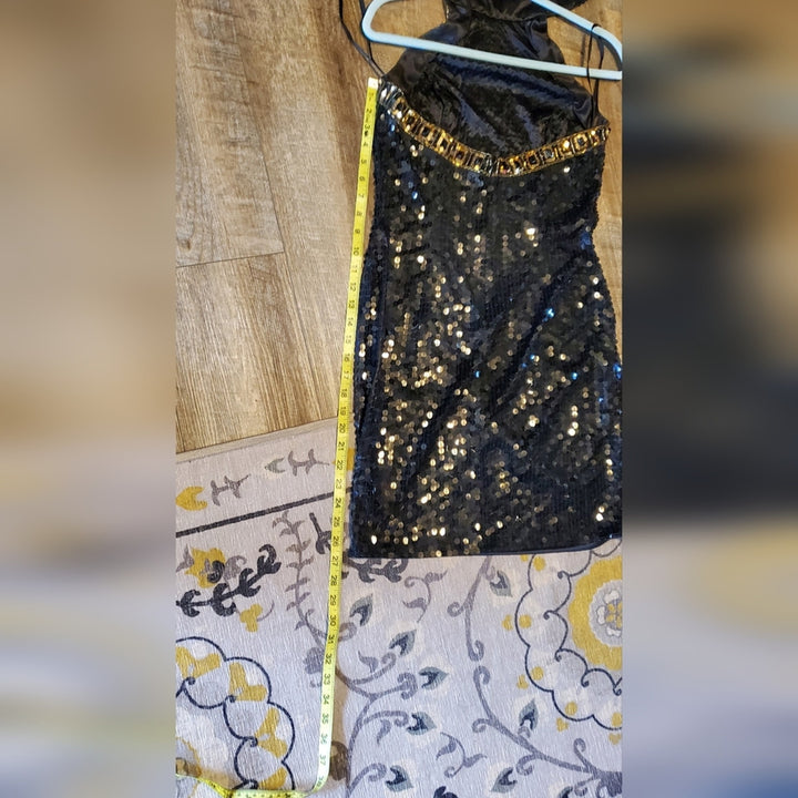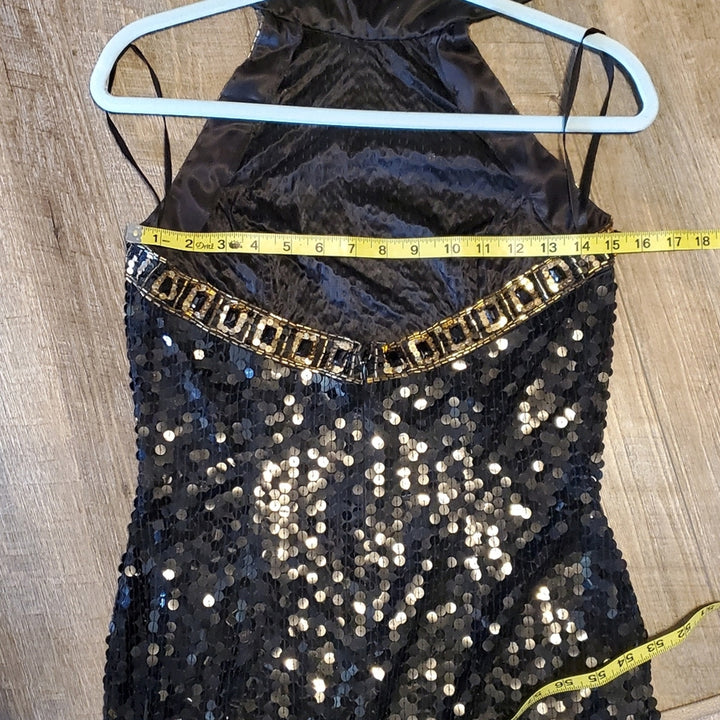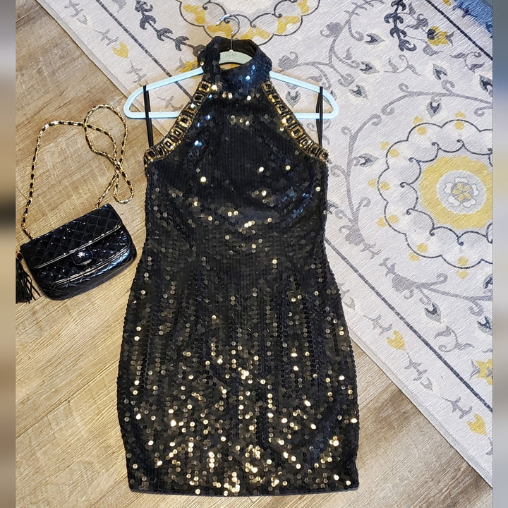 Niteline Women’s Black & Gold Halter Silk Sequin Sparkle Mini Dress – Size [Insert Size]
