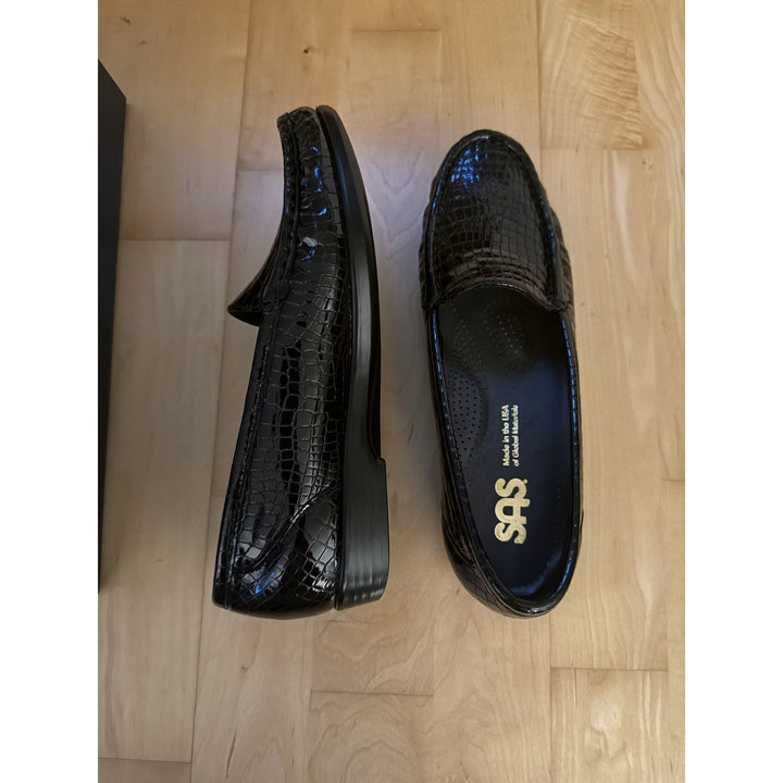NWB SAS Tripad Comfort Black Crocodile Print Leather Loafers – Size 7N