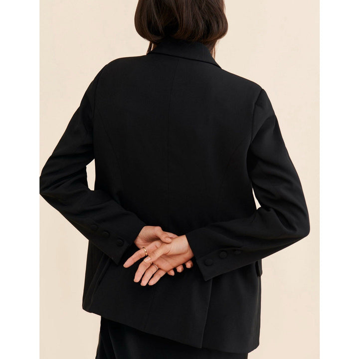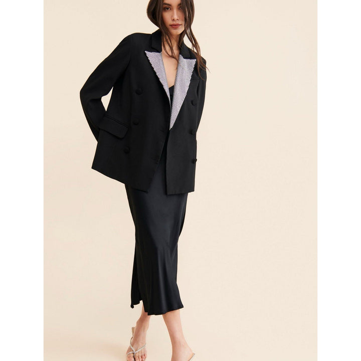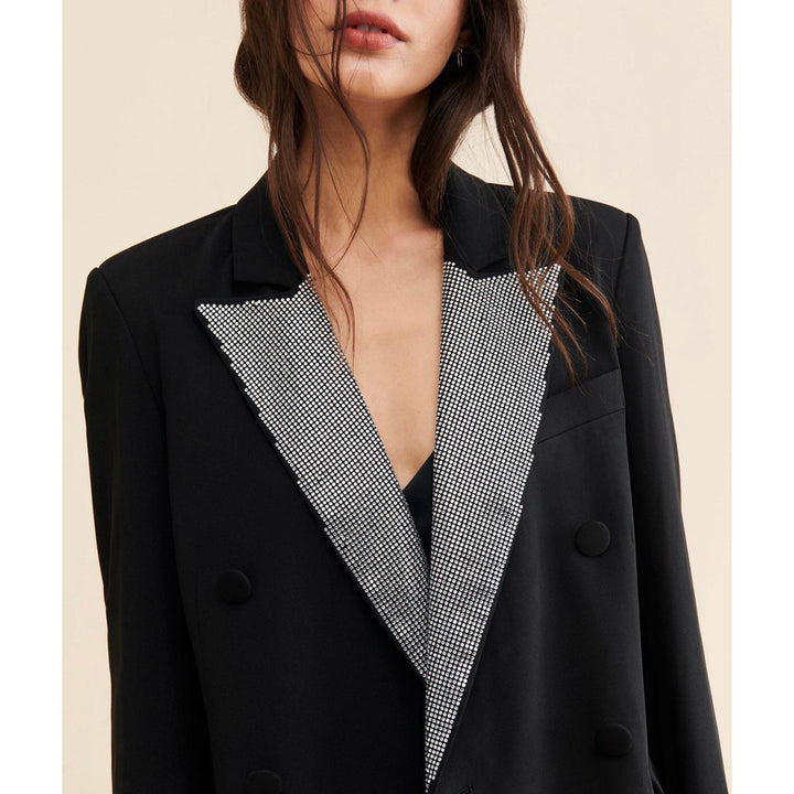 NWOT Avec Les Filles Women's Black Silver Rhinestone Tuxedo Blazer Jacket – Medium