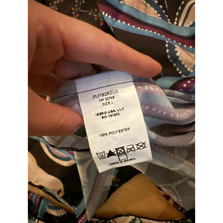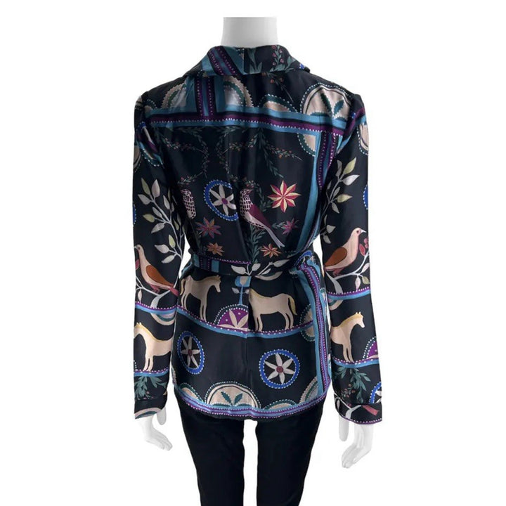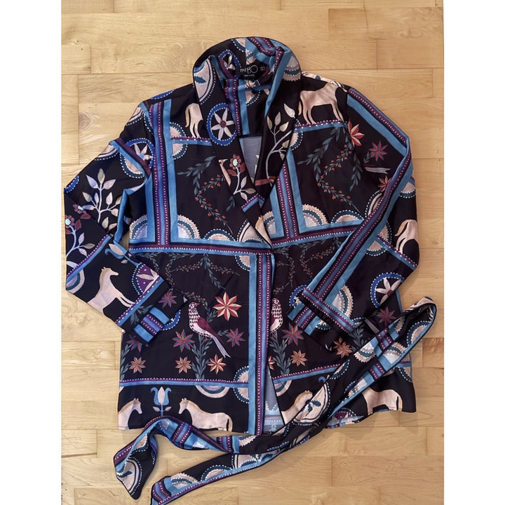 NWOT PatBO Women’s Black Retro Horse Print Tie Waist Blouse Size Large