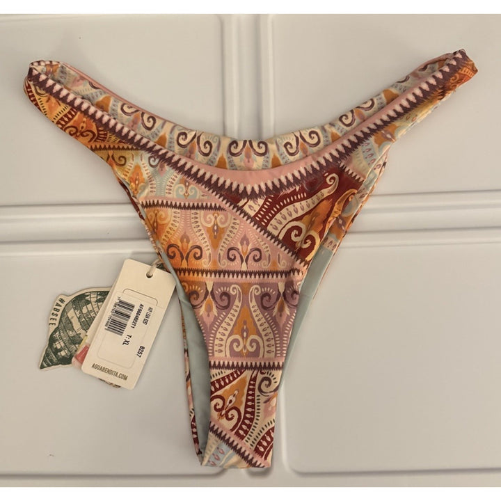NWT Agua Bendita Women’s Avy Reversible Leva Boho Print Swim Bottoms – Pink, Size XL