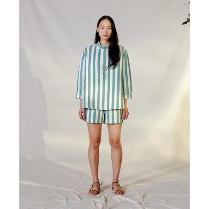 NWT Attersee Women's The Pop-Over Shirt – Green Stripe – Medium/Large