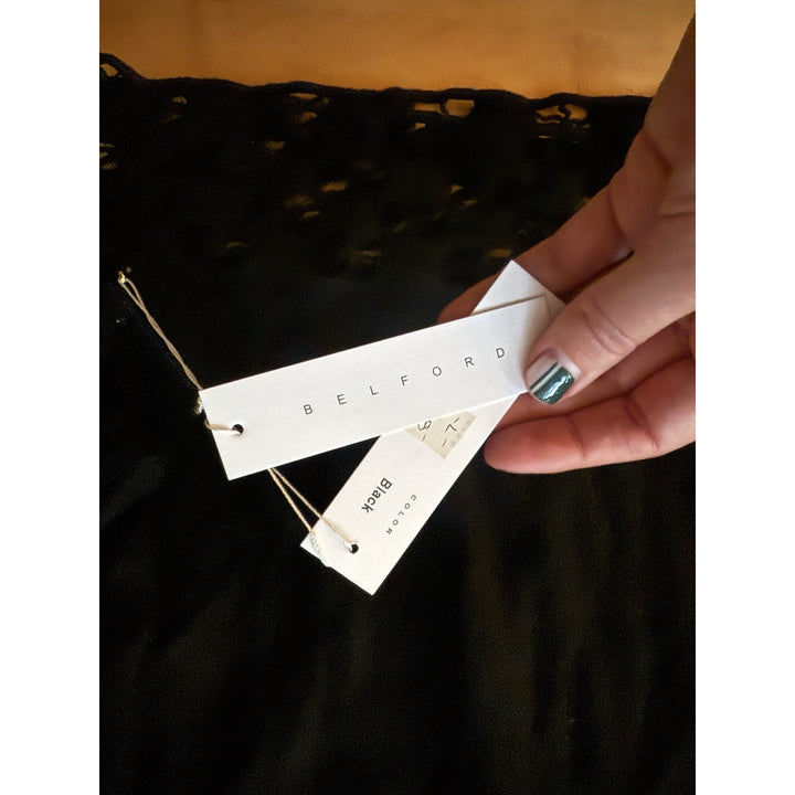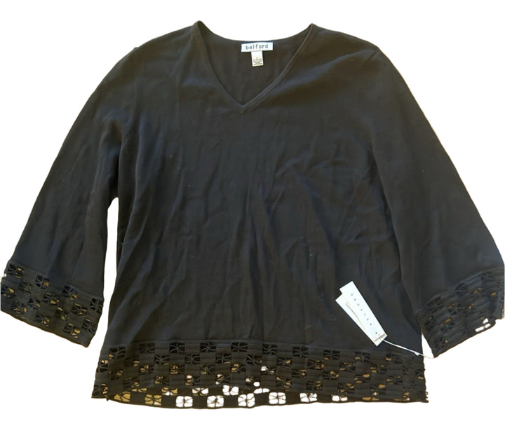 NWT Belford Women’s Black V-Neck Pima Cotton Crochet Trim Top – Size Large