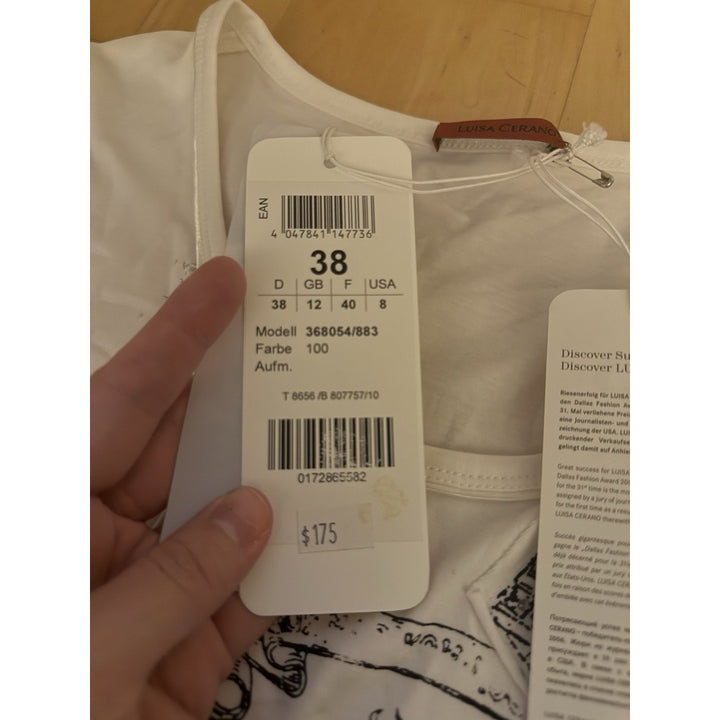NWT Luisa Cerano Women’s V-Neck Beaded Graphic Tunic Top – Gray, Size 8