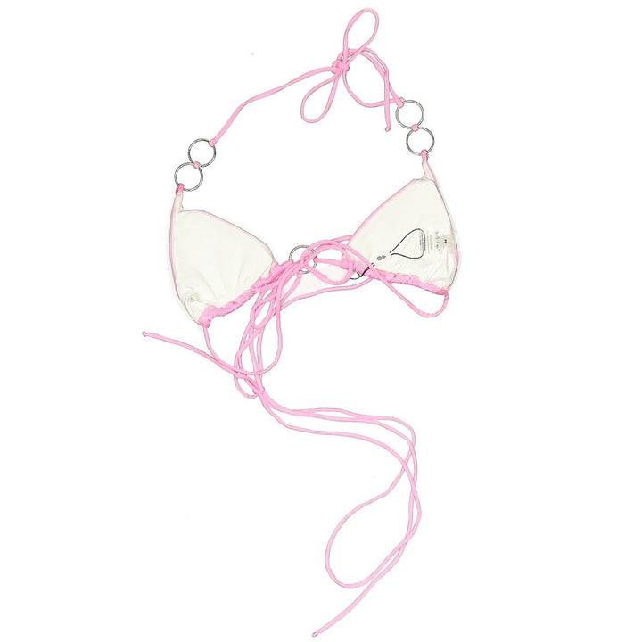 Make a bold statement in the NWT Monica Hansen Beachwear Icon Triangle Bikini Top in vibrant Azalea Pink. Designed in a classic triangle cut, this size Medium swim top offers a flattering fit with just the right amount of allure. Whether you’re poolside or beach-bound, this standout piece combines comfort and eye-catching style—perfect for turning heads all summer long.
