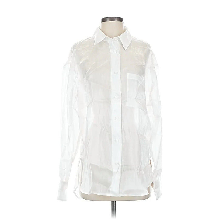 NWT Reformation Women’s Will White Sheer Long Sleeve Collared Button-Up Top Small