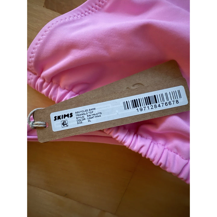 Stay cool and confident in the NWT SKIMS Signature Triangle Bikini Top in Light Pink, size XL. Featuring a flattering triangle cut and soft stretch fabric, this swim top delivers effortless support and style. A summer essential for poolside lounging or beachside fun.