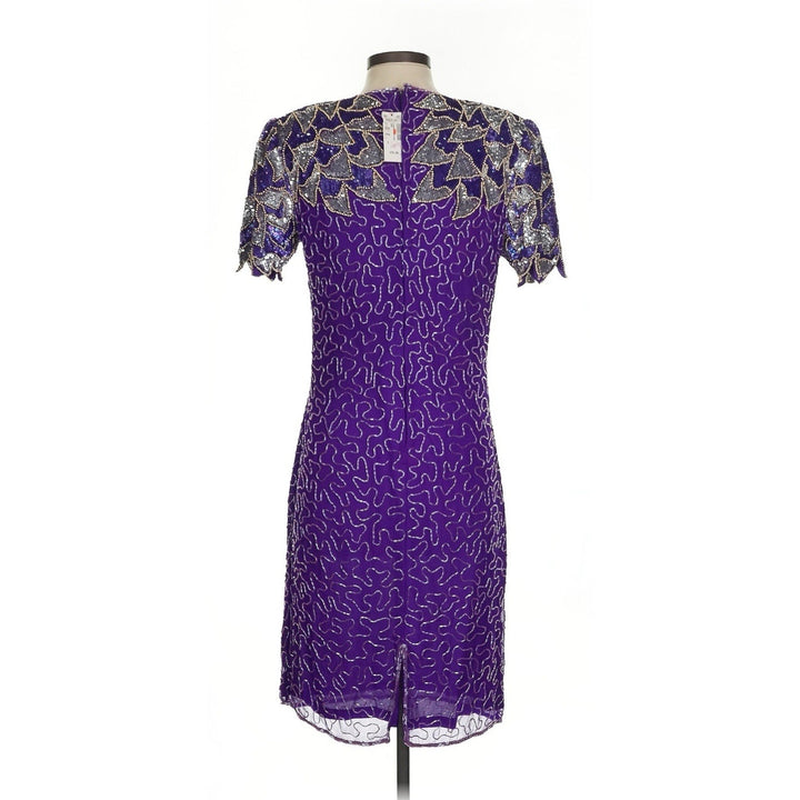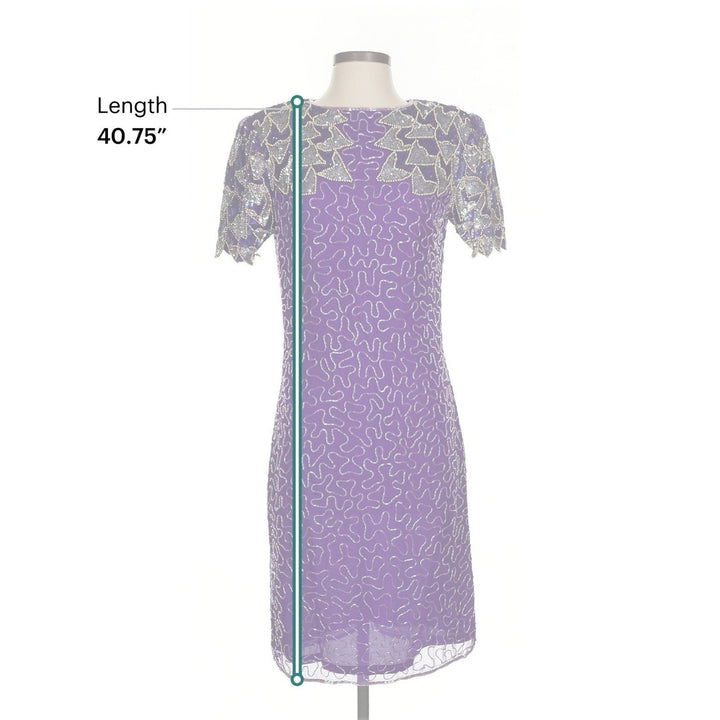 NWT Vintage Carina Women's Purple Silk Beaded Midi Dress – 80s Disco Hearts Mardi Gras – Size Small