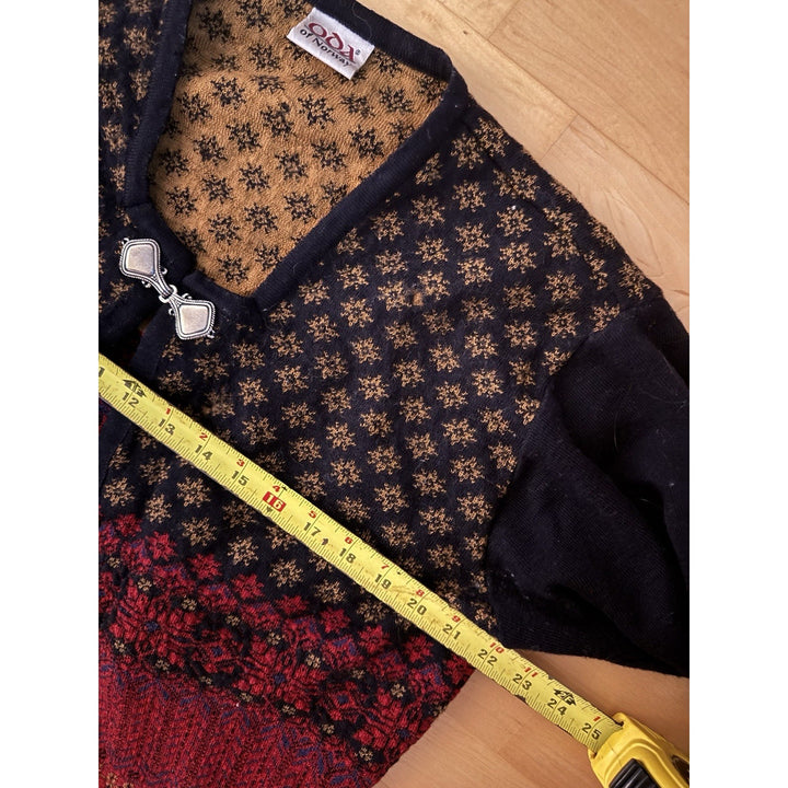 ODA of Norway Women's Red Tan Wool Cardigan Sweater – Design Gerd Vikingstad – Size Medium