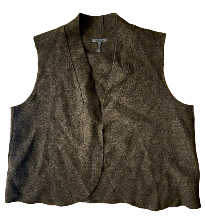 Oska Women’s Gray Worsted Wool Avant-Garde Open Vest Sweater – Size 3