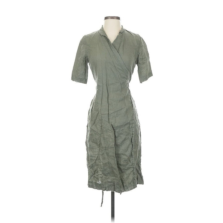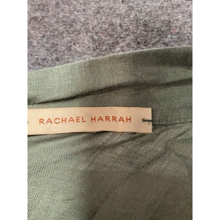 Rachel Harrah Women’s Olive Green Linen Wrap Dress – Size Small