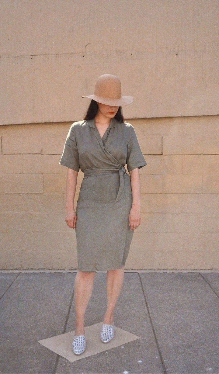 Effortlessly chic, this Rachel Harrah linen wrap dress in olive green offers a timeless blend of style and comfort. Designed in a flattering wrap silhouette, it cinches at the waist to enhance your shape while maintaining a breezy, relaxed feel.