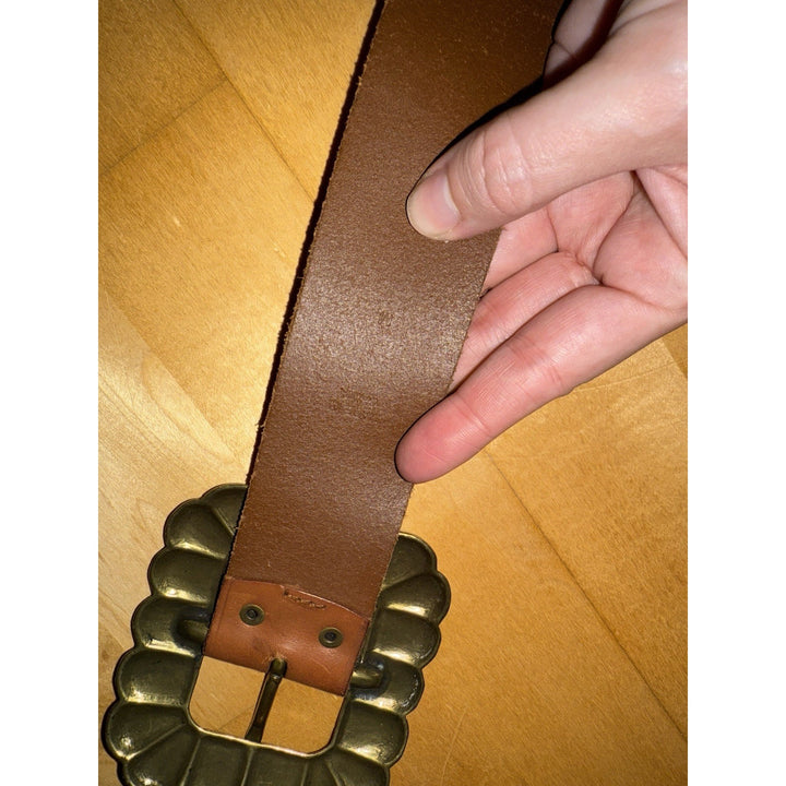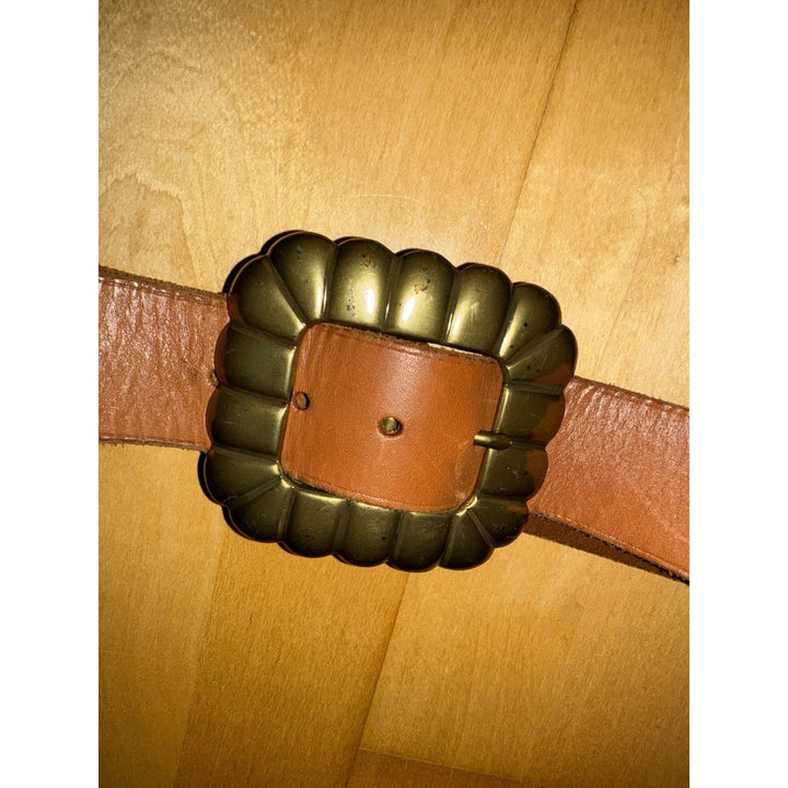 Ralph Lauren Tan Brown Cognac Brass Concho Square Western Equestrian Belt M