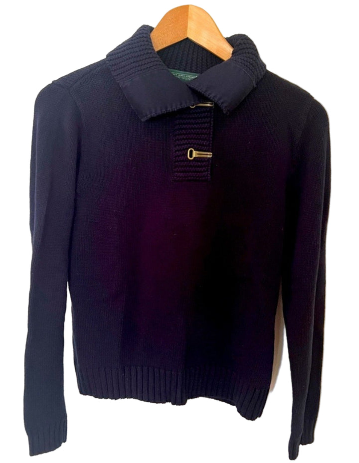 Ralph Lauren Women’s Navy Cowl Funnel Neck Half Sweater Knit – Small