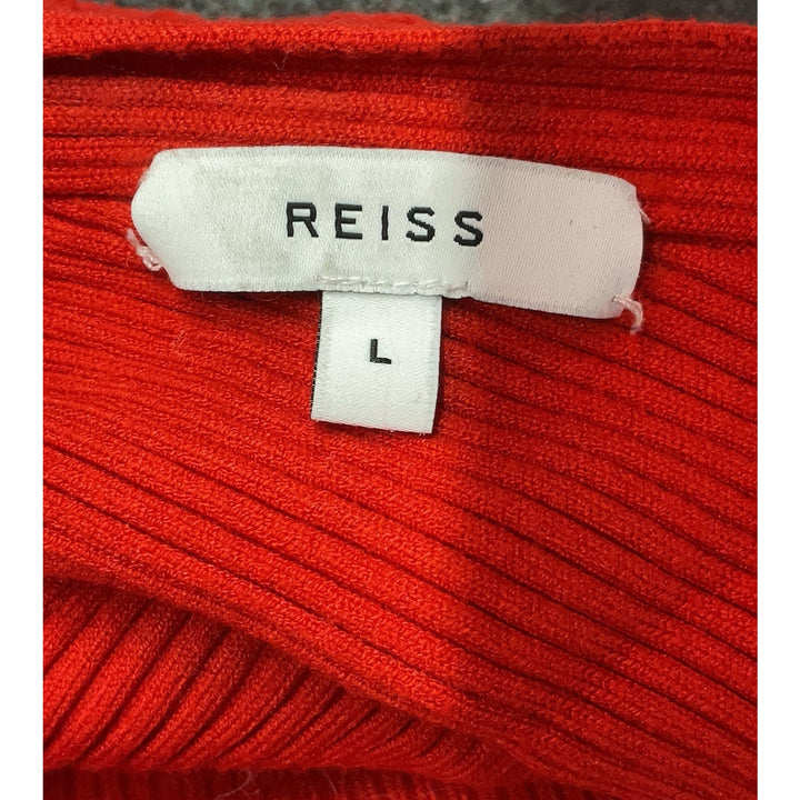 REISS Women's Lorna Asymmetric Drape Knit Top – Red – Size Large