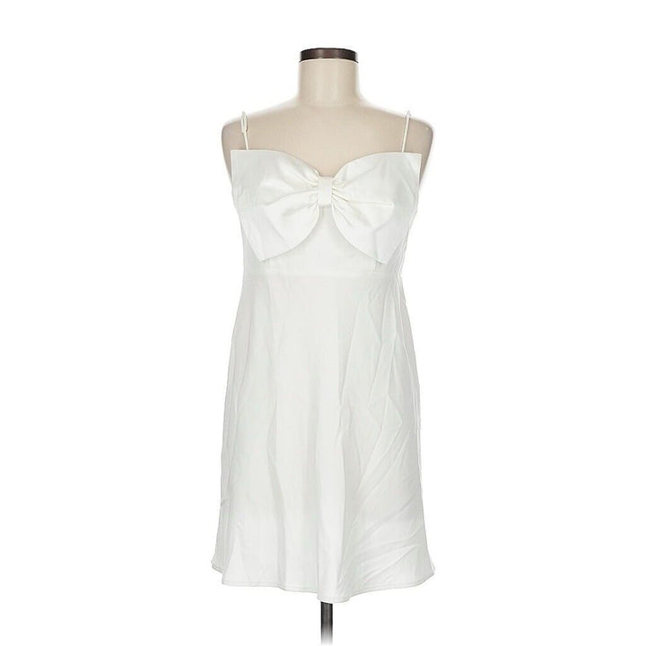 RIXO London Women's White Oversized Bow Mini Dress Bridal Elegant Size 8