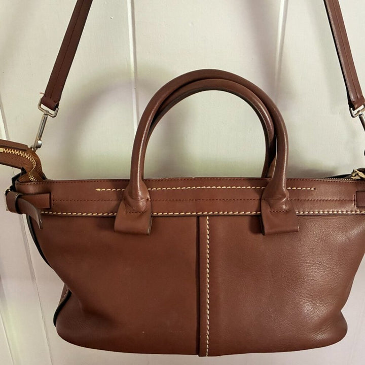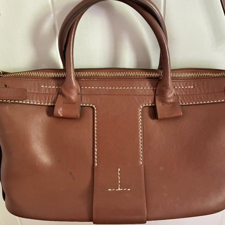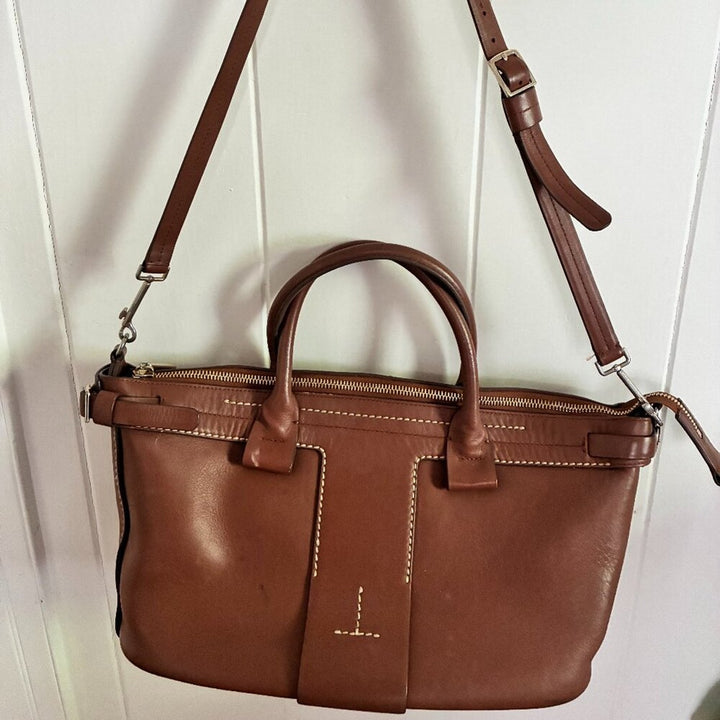 Theory Brown t bar top handle crossbody brown cognac Leather Satchel bag